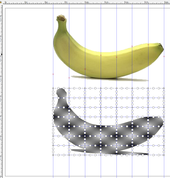 Voorbeeld: Banaan & Appel nagetekend met behulp van Meshes