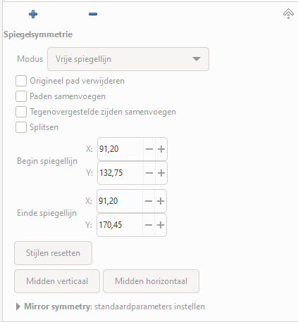 Menu: Paden - Pad effecten - Spiegelsymmetrie