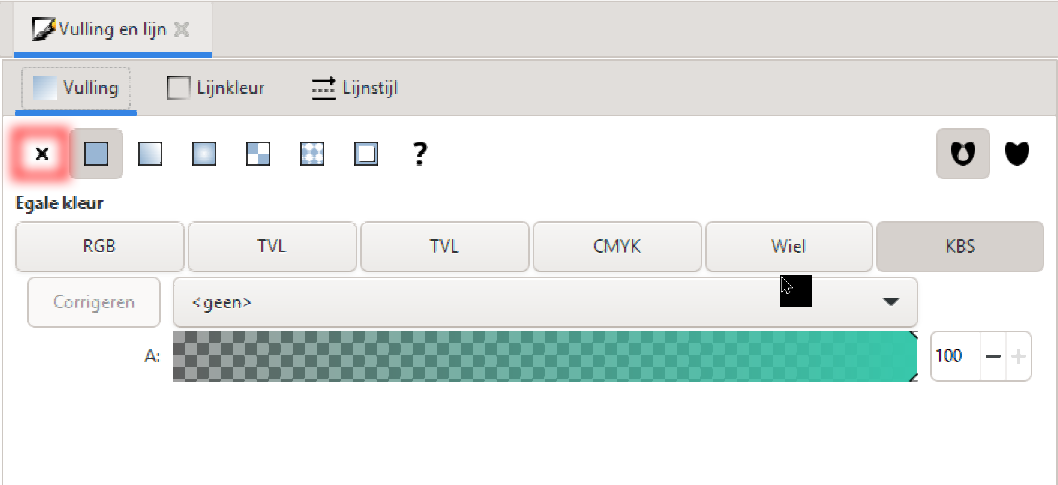 - Verwijder de vulling bij 'Vulling en Lijn' [ Shift-Ctrl-F ] kies daar 'X' bij vulling