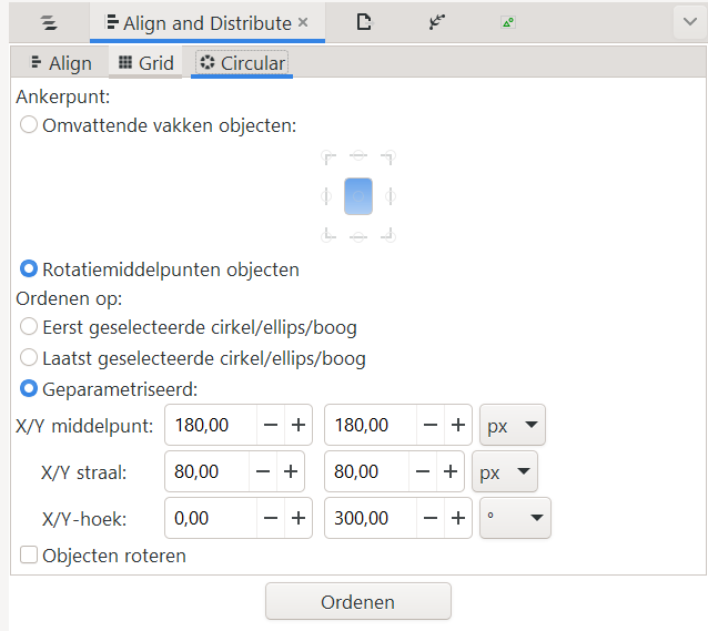Menu: Object - Uitlijnen en verdelen - Cirkelvormig...